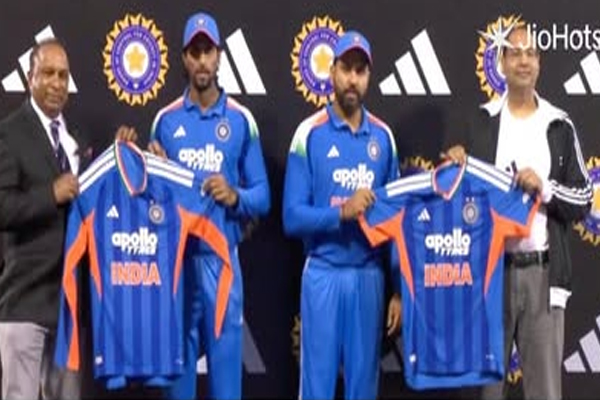 ರೋಹಿತ್ ಶರ್ಮಾ, ತಿಲಕ್ ವರ್ಮಾ ಮತ್ತು ಬಿಸಿಸಿಐ ಕಾರ್ಯದರ್ಶಿ ದೇವ್ಜಿತ್ ಸೈಕಿಯಾ ಜೆರ್ಸಿ ಬಿಡುಗಡೆ ಸಮಾರಂಭದಲ್ಲಿ ಉಪಸ್ಥಿತರಿದ್ದರು.
