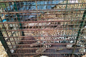 ತೋಟದಲ್ಲಿ ಅಳವಡಿಸಿದ್ದ ಬೋನಿಗೆ ಬಿದ್ದ ಕೋಳಿ ಕಳ್ಳ ಚಿರತೆ