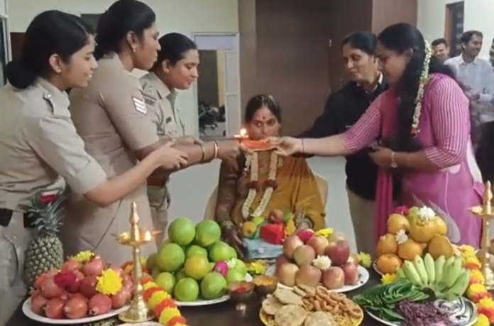 ಇನ್ಸ್ಪೆಕ್ಟರ್ ಸತೀಶ್ ಅವರ ನೇತೃತ್ವದಲ್ಲಿ ನಡೆದ ಈ ಕಾರ್ಯಕ್ರಮದಲ್ಲಿ, ಠಾಣೆಯ ಎಲ್ಲ ಸಿಬ್ಬಂದಿ ವರ್ಗದವರು ಭಾಗವಹಿಸಿದ್ದರು. ಉಮಾ ಅವರಿಗೆ ಅರಶಿನ, ಕುಂಕುಮ, ಫಲ ತಾಂಬೂಲ ನೀಡಿ, ಹಸಿರು ಬಳೆಗಳನ್ನು ತೊಡಿಸುವ ಮೂಲಕ ಶುಭ ಶಾಸ್ತ್ರೋಕ್ತವಾಗಿ ಕಾರ್ಯಕ್ರಮವನ್ನು ನೆರವೇರಿಸಲಾಯಿತು.