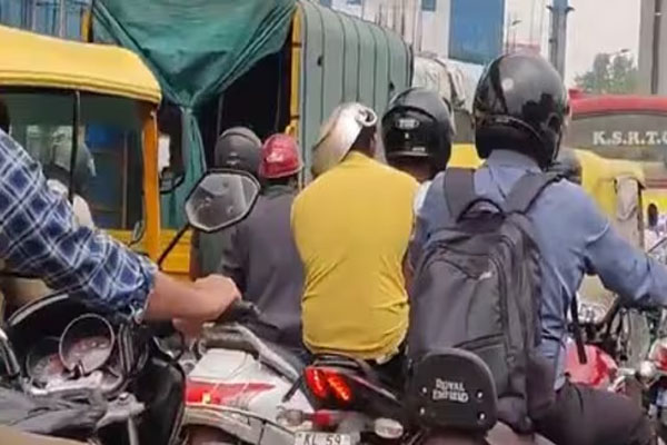 ನಗರದ ಟ್ರಾಫಿಕ್ ನಿಯಮಗಳನ್ನು ಉಲ್ಲಂಘಿಸುವವರ ಸಂಖ್ಯೆ ದಿನೇದಿನೇ ಹೆಚ್ಚುತ್ತಿರುವ ಸಂದರ್ಭದಲ್ಲಿ, ಬೆಂಗಳೂರಿನಲ್ಲಿ ಒಬ್ಬ ದ್ವಿಚಕ್ರ ವಾಹನ ಸವಾರ ದಂಡ ತಪ್ಪಿಸಿಕೊಳ್ಳಲು ಮಾಡಿದ ವಿಚಿತ್ರ ಪ್ರಯತ್ನ ಇದೀಗ ಸಾಮಾಜಿಕ ಜಾಲತಾಣಗಳಲ್ಲಿ ವೈರಲ್ ಆಗಿದೆ. ರೂಪೇನ ಅಗ್ರಹಾರ ಬಳಿ ಚಿತ್ರೀಕರಿಸಲಾದ ಈ ವಿಡಿಯೋದಲ್ಲಿ, ಬೈಕ್ ಹಿಂಬದಿ ಸವಾರನೊಬ್ಬ ಹೆಲ್ಮೆಟ್ ಧರಿಸುವ ಬದಲು ಬಾಣಲೆಯನ್ನು ತಲೆಯ ಮೇಲೆ ಇಟ್ಟುಕೊಂಡು ಪ್ರಯಾಣಿಸುತ್ತಿರುವುದನ್ನು ಕಾಣಬಹುದು.