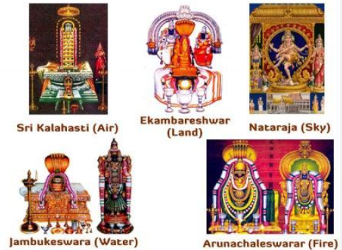 ಈ ಐದು ಪುಣ್ಯಕ್ಷೇತ್ರಗಳು ದಕ್ಷಿಣ ಭಾರತದಲ್ಲಿ, ಅವುಗಳಲ್ಲಿ ನಾಲ್ಕು ತಮಿಳುನಾಡಿನಲ್ಲಿ ಮತ್ತು ಒಂದು ಆಂಧ್ರಪ್ರದೇಶದಲ್ಲಿವೆ. ಈ ದೇವಾಲಯಗಳಲ್ಲಿರುವ ಶಿವಲಿಂಗಗಳು ಆಯಾ ಮೂಲಧಾತುವಿನ ದೈವಿಕ ಶಕ್ತಿಯನ್ನು ತನ್ನಲ್ಲಿ ಇರಿಸಿಕೊಂಡಿವೆ ಎಂದು ನಂಬಲಾಗಿದೆ.