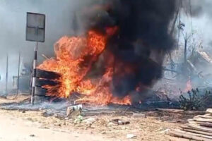 ಟ್ರಾನ್ಸ್ಫಾರ್ಮರ್ ನಿಂದ ಸಿಡಿದ ಬೆಂಕಿಯ ಕಿಡಿಗೆ ಹೊತ್ತಿ ಉರಿದ ಟಯರ್ ಅಂಗಡಿ!