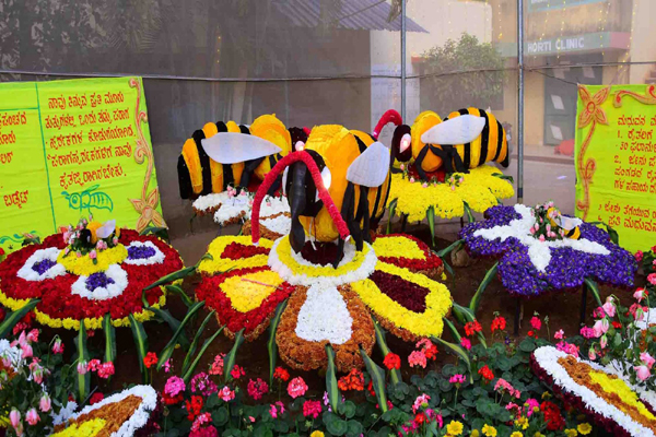 ಹೂವಿನಿಂದ ನಿರ್ಮಿಸಿದ ಟಾಂಗಾ ಮತ್ತು ಮತ್ಸ್ಯ ಪ್ರದರ್ಶನ.