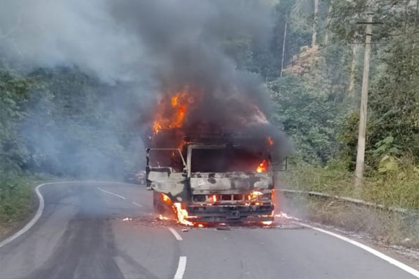 ಮಡಿಕೇರಿ- ಮಂಗಳೂರು ನಡುವಿನ ದೇವರಕೊಲ್ಲಿ ಬಳಿ ಲಾರಿಯೊಂದು ಬೆಂಕಿಗೆ ಆಹುತಿಯಾದ ಘಟನೆ ಶುಕ್ರವಾರ ಬೆಳಗಿನ ಜಾವ ನಡೆದಿದೆ.
