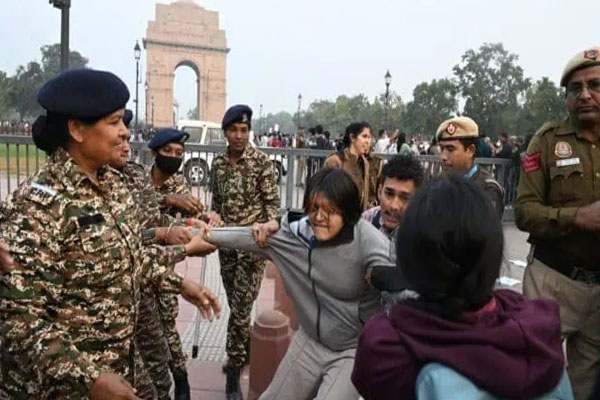 ಪ್ರತಿಭಟನಕಾರರನ್ನು ಚದುರಿಸಲು ಪೊಲೀಸರು ಯತ್ನಿಸಿದಾಗ ವಾಗ್ವಾದ ಉಂಟಾಗಿ, ಕೆಲವರು ಪೊಲೀಸರ ಮೇಲೆಯೇ ಪೆಪ್ಪರ್ ಸ್ಪ್ರೇ ಸಿಂಪಡಿಸಿದ ಘಟನೆ ನಡೆದಿದೆ. ಇದರಲ್ಲಿ ನಾಲ್ಕು ಪೊಲೀಸರು ಗಾಯಗೊಂಡಿದ್ದಾರೆ. ಹೆಚ್ಚಿನ ಸಂಖ್ಯೆಯಲ್ಲಿ ಜನರು ಜಂತರ್ ಮಂತರ್ ಬದಲು ಇಂಡಿಯಾ ಗೇಟ್ನಲ್ಲಿ ಪ್ರತಿಭಟನೆ ನಡೆಸಿದ ಪರಿಣಾಮ ಸಂಚಾರವೂ ಕೆಲಕಾಲ ಅಸ್ತವ್ಯಸ್ತಗೊಂಡಿತು. ಬ್ಯಾರಿಕೇಡ್ ಕಿತ್ತು ಎಸೆಯುವ ಯತ್ನ ಮಾಡಿದ ಹಿನ್ನೆಲೆಯಲ್ಲಿ ಆರು ಮಂದಿಯನ್ನು ಪೊಲೀಸರು ಬಂಧಿಸಿದ್ದಾರೆ.
