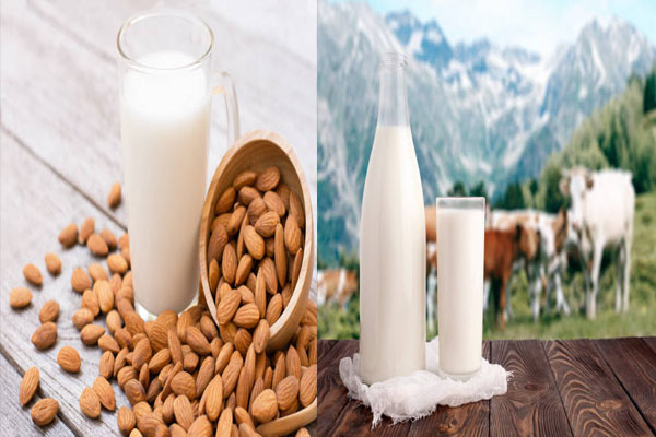 ಹಸು ಹಾಲಿನಲ್ಲಿ ಪ್ರೋಟೀನ್, ಕ್ಯಾಲ್ಸಿಯಂ, ವಿಟಮಿನ್ B12, ಮತ್ತು ಪೊಟ್ಯಾಸಿಯಂ ಅಧಿಕವಾಗಿರುತ್ತವೆ. ಬಾದಾಮಿ ಹಾಲು ಪ್ರೋಟೀನ್ನಲ್ಲಿ ಕಡಿಮೆ ಆದರೆ ವಿಟಮಿನ್ E ಹಾಗೂ ಆಂಟಿಆಕ್ಸಿಡೆಂಟ್ಗಳಲ್ಲಿ ಸಮೃದ್ಧವಾಗಿದೆ. ಹೀಗಾಗಿ ಮಸಲ್ ಬಿಲ್ಡಿಂಗ್ ಅಥವಾ ಪ್ರೋಟೀನ್ ಅಗತ್ಯ ಇರುವವರಿಗೆ ಹಸು ಹಾಲು, ಮತ್ತು ಚರ್ಮ, ಕೂದಲಿನ ಆರೋಗ್ಯ ಬಯಸುವವರಿಗೆ ಬಾದಾಮಿ ಹಾಲು ಉತ್ತಮ.