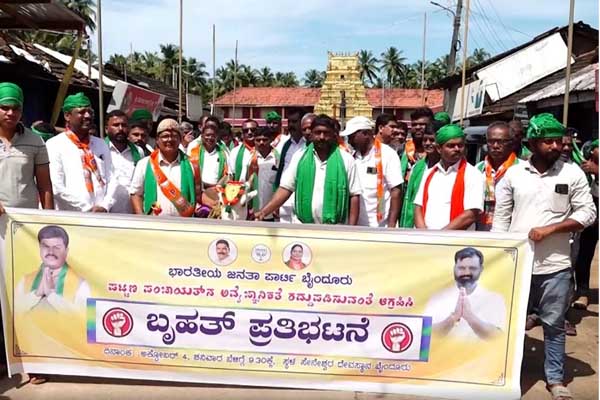 ಅವೈಜ್ಞಾನಿಕ ಬೈಂದೂರು ಪಟ್ಟಣ ಪಂಚಾಯಿತಿ ರಚನೆ ರದ್ದುಪಡಿಸುವಂತೆ ಆಗ್ರಹಿಸಿ ಬಿಜೆಪಿ, ಕಿಸಾನ್ ಘಟಕ ಪ್ರತಿಭಟನೆ, ಜಾಥಾ