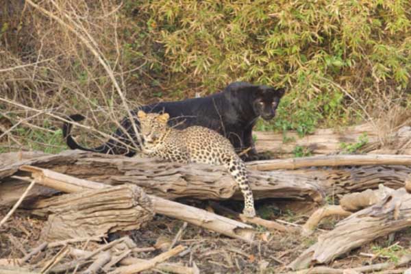 ಪ್ರವಾಸಿಗರೊಬ್ಬರ ಕ್ಯಾಮರಾದಲ್ಲಿ ಬ್ಲ್ಯಾಕ್ ಪ್ಯಾಂಥರ್ ಮತ್ತು ಚಿರತೆ ಸೆರೆಯಾಗಿದ್ದು, ಈ ವೀಡಿಯೋ ಸಾಮಾಜಿಕ ಜಾಲತಾಣಗಳಲ್ಲಿ ವೈರಲ್ ಆಗಿದೆ.