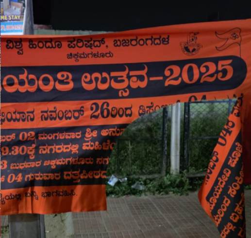 ಚಿಕ್ಕಮಗಳೂರು ಜಿಲ್ಲೆಯಲ್ಲಿ ಡಿಸೆಂಬರ್ 2 ರಿಂದ 4 ರ ವರೆಗೆ ನಡೆಯಲಿರುವ ದತ್ತ ಜಯಂತಿ ಉತ್ಸವಕ್ಕೆ ಸಿದ್ಧತೆ ನಡೆಯುತ್ತಿರುವಾಗಲೇ, ನಗರದಲ್ಲಿ ಕೋಮು ಪ್ರಚೋದನೆ ನೀಡುವಂತಹ ವಿಧ್ವಂಸಕ ಕೃತ್ಯವೊಂದು ನಡೆದಿದೆ. ನಗರದ ಐಜಿ ರಸ್ತೆಯಲ್ಲಿರುವ ಉರ್ದು ಶಾಲೆ ಮುಂಭಾಗದಲ್ಲಿ ಹಿಂದು ಸಂಘಟನೆಯ ಕಾರ್ಯಕರ್ತರು ಅಳವಡಿಸಿದ್ದ ದತ್ತ ಜಯಂತಿ ಫ್ಲೆಕ್ಸ್ ಅನ್ನು ಕಿಡಿಗೇಡಿಗಳು ಬ್ಲೇಡ್ನಿಂದ ಕತ್ತರಿಸಿ ಹರಿದು ಹಾಕಿರುವ ಘಟನೆ ಬೆಳಕಿಗೆ ಬಂದಿದೆ.