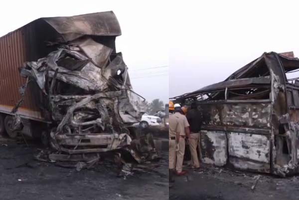 ಚಿತ್ರದುರ್ಗ ಜಿಲ್ಲೆಯ ಹಿರಿಯೂರು ತಾಲೂಕಿನ ಗೊರ್ಲತ್ತು ಕ್ರಾಸ್ ಬಳಿ ರಾಷ್ಟ್ರೀಯ ಹೆದ್ದಾರಿ 48 ರಲ್ಲಿ ಭೀಕರ ರಸ್ತೆ ಅಪಘಾತ ಸಂಭವಿಸಿದ್ದು, ಕನಿಷ್ಠ 17 ಮಂದಿ ಸಜೀವ ದಹನವಾಗಿದ್ದಾರೆ.
