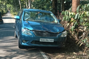 ಹೊಸದಿಗಂತ ವರದಿ ಮಡಿಕೇರಿ: ಕಾರಿನ ಮೇಲೆ ಕಾಡುಕೋಣ ದಾಳಿ ನಡೆಸಿ ವಾಹನ ಜಖಂಗೊಳಿಸಿದ ಘಟನೆ ವೀರಾಜಪೇಟೆ ತಾಲೂಕಿನ ಸಿದ್ದಾಪುರ ವ್ಯಾಪ್ತಿಯ ಕರಡಿಗೋಡು ಗ್ರಾಮದಲ್ಲಿ ನಡೆದಿದೆ. ಆರೆಂಜ್ ಕೌಂಟಿ ಮಾಲಕ ಇಮ್ಯಾನುವೆಲ್ ರಾಮಪುರಂ ಅವರು ಸಿದ್ದಾಪುರ ಪಟ್ಟಣದತ್ತ ತೆರಳುತ್ತಿದ್ದ ವೇಳೆ, ಒಂದು ತೋಟದಿಂದ ಮತ್ತೊಂದು ತೋಟಕ್ಕೆ ವೇಗವಾಗಿ ದಾಟುತ್ತಿದ್ದ ಕಾಡುಕೋಣ ಕಾರಿಗೆ ಗುದ್ದಿದೆ. ಪರಿಣಾಮ ಕಾರಿನ ಮುಂಭಾಗದ ಭಾಗಕ್ಕೆ ಹಾನಿಯಾಗಿದ್ದು, ವಾಹನ ಜಖಂಗೊಂಡಿದೆ. ಅದೃಷ್ಟವಶಾತ್ ಯಾವುದೇ ಪ್ರಾಣಾಪಾಯ ಸಂಭವಿಸಿಲ್ಲ. ಇದನ್ನೂ ಓದಿ: ಘಟನೆಯ ಮಾಹಿತಿ ತಿಳಿದು ಸ್ಥಳಕ್ಕೆ ವಲಯ … Continue reading ರಸ್ತೆ ದಾಟುತ್ತಿದ್ದ ಕಾಡುಕೋಣಕ್ಕೆ ಕಾರು ಡಿಕ್ಕಿ: ಪ್ರಾಣಾಪಾಯದಿಂದ ಪಾರಾದ ಪ್ರಯಾಣಿಕ