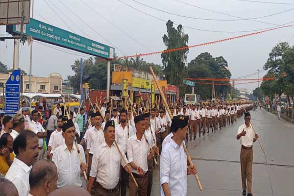 ರಾಷ್ಟ್ರೀಯ ಸ್ವಯಂ ಸೇವಕ ಸಂಘದ ಶತಾಬ್ದಿ ವರ್ಷ ಹಾಗೂ ವಿಜಯದಶಮಿ ನಿಮಿತ್ತ ನಗರದಲ್ಲಿ ಶನಿವಾರ ಸಂಜೆ ದಂಡ ಸಹಿತ ಗಣವೇಷದೊಂದಿಗೆ ಶಿಸ್ತಿನ ಪಥಸಂಚಲನ ಜರುಗಿತು. ಬಂಬೂ ಬಜಾರ್ ವಿಠಲ್ ಮಂದಿರ ಹಾಗೂ ಶ್ಯಾಬನೂರು ರಸ್ತೆಯ ಕಾಸಲ್ ವಿಠಲ್ ಶ್ರೇಷ್ಠಿ ಉದ್ಯಾನವನ ಹೀಗೆ ಎರಡು ಕಡೆಯಿಂದ ಆರಂಭಗೊಂಡ ಸ್ವಯಂಸೇವಕರ ಪಥಸಂಚಲನವು ಹೈಸ್ಕೂಲ್ ಮೈದಾನದಲ್ಲಿ ಸಮಾವೇಶಗೊಂಡಿತು. ಸಾವಿರಾರು ಸ್ವಯಂಸೇವಕರು ಶಿಸ್ತಿಯಿಂದ ಹೆಜ್ಜೆ ಹಾಕುತ್ತಿದ್ದುದನ್ನು ನಾಗರೀಕರು ಕಣ್ತುಂಬಿಕೊಂಡು ಪ್ರೇರಣೆ ಪಡೆದರು. ಅನೇಕ ಕಡೆ ಪಥಸಂಚಲನ ನಡೆಯುವ ಮಾರ್ಗದಲ್ಲಿ ರಂಗೋಲಿ, ಹೂವು, ಜಲಪ್ರೋಕ್ಷಣೆ ಮಾಡಿ ಸ್ವಯಂಸೇವಕರನ್ನು ಸ್ವಾಗತಿಸಲಾಯಿತು.