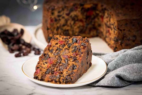 ಒಣದ್ರಾಕ್ಷಿ, ಖರ್ಜೂರ, ಅಂಜೂರ ಹೇಝಲ್‌ನಟ್, ಬಾದಾಮಿ ಇತ್ಯಾದಿ, ಮದ್ಯ, ಕಪ್ಪು ಚಹಾ, ಕಿತ್ತಳೆ ರಸ, ಅಥವಾ ಸೇಬಿನ ರಸ. ಬೆಣ್ಣೆ, ಸಕ್ಕರೆ, ಮೊಟ್ಟೆ, ವೆನಿಲ್ಲಾ, ಮಸಾಲೆಗಳು, ಮೈದಾ
