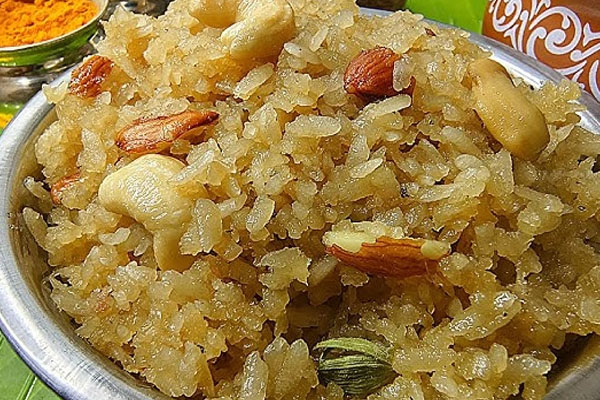 ಒಂದು ಪ್ಯಾನ್‌ನಲ್ಲಿ ತುಪ್ಪ ಬಿಸಿ ಮಾಡಿ, ಅದರಲ್ಲಿ ಗೋಡಂಬಿ, ದ್ರಾಕ್ಷಿ ಹಾಕಿ ಸ್ವಲ್ಪ ಫ್ರೈ ಮಾಡಿ ಬದಿಗಿಡಿ. ಅದೇ ಪ್ಯಾನ್‌ನಲ್ಲಿ ಬೆಲ್ಲ ಮತ್ತು ಸ್ವಲ್ಪ ನೀರು ಹಾಕಿ ಸಿಹಿ ಸಿರಪ್ ತಯಾರಿಸಿ.