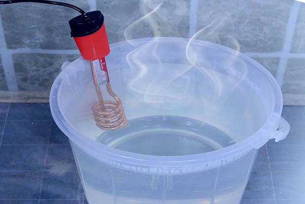 ನೀರಿನ ಮಟ್ಟವನ್ನು ಅವಲಂಬಿಸಿ, ಬಕೆಟ್ ಸಂಪೂರ್ಣವಾಗಿ ತುಂಬಿದ ನಂತರ, ಹೀಟರ್ ಅನ್ನು ನೀರಿನಲ್ಲಿ ಇಡಬೇಕು. ಹೀಟರ್ ಕ್ವಾಯಿಲ್ ಅನ್ನು ಸಂಪೂರ್ಣವಾಗಿ ಮುಳುಗಿಸಲು ಕಾಳಜಿ ವಹಿಸಿ. ನಂತರ ಮಾತ್ರ ಪ್ಲಗ್ ಅನ್ನು ಸಾಕೆಟ್ಗೆ ಹಾಕಬೇಕು ಹಾಗೂ ಆನ್ ಮಾಡಬೇಕು. ಬಕೆಟ್ನಲ್ಲಿರುವ ನೀರು ಶೇಕಡಾ 90ಕ್ಕಿಂತ ಹೆಚ್ಚು ಇರಬೇಕು.