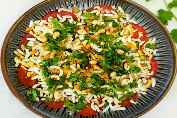 ಇದರ ಮೇಲೆ ಉಪ್ಪು, ಚಾಟ್‌ ಮಸಾಲಾ ಉದುರಿಸಿ, ನಂತರ ಈರುಳ್ಳಿ, ಕ್ಯಾರೆಟ್‌ ತುರಿ ಹಾಕಿ