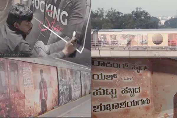 ಯಶ್ ಅವರ ಸ್ನೇಹಿತರು ನಮ್ಮ ಮೆಟ್ರೋ ಮೇಲೆ ರಾಕಿ ಭಾಯ್ಗೆ ಹುಟ್ಟುಹಬ್ಬ ಶುಭಾಶಯಗಳನ್ನು ಕೋರುತ್ತಿರುವ ಪೋಸ್ಟರ್ಗಳನ್ನು ಅಂಟಿಸಿ, ಜಾಹೀರಾತು ನೀಡಿದ್ದಾರೆ. ಇದೇ ಮೊದಲ ಬಾರಿಗೆ ಇಂಥ ಪ್ರಯೋಗ ನಡೆದಿರುವುದು ವಿಶೇಷ.