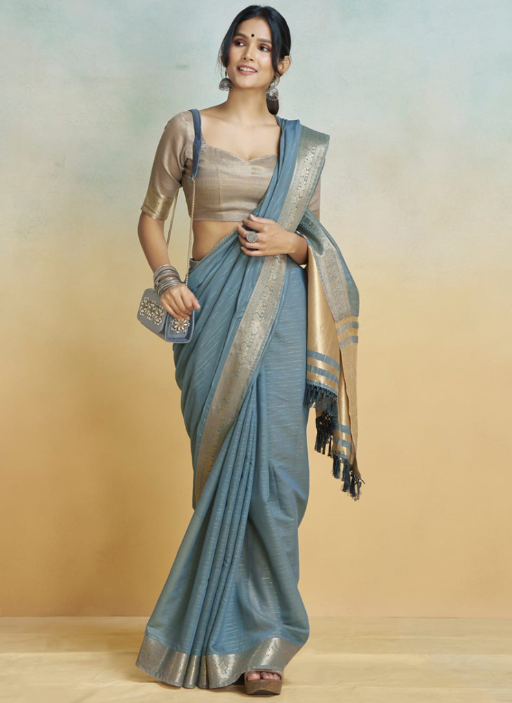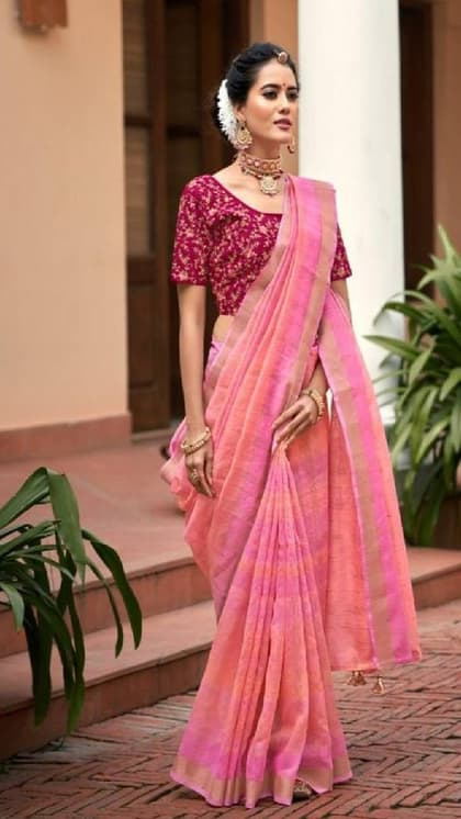 ಲಿನನ್ ಮಿಶ್ರಿತ ಖಾದಿ ಸೀರೆಗಳು ತುಂಬಾ ಸ್ಟೈಲಿಷ್ ಆಗಿ ಕಾಣಿಸುತ್ತವೆ. ಇವು ಧರಿಸಿದಾಗ ಸ್ಮಾರ್ಟ್ ಮತ್ತು ಆಧುನಿಕ ಲುಕ್ ನೀಡುತ್ತವೆ.