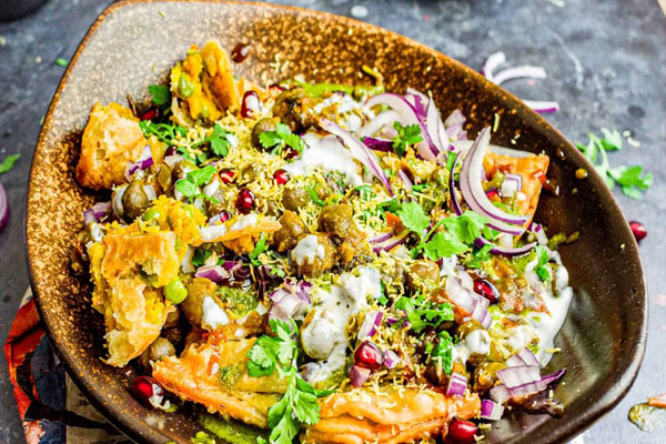 ಮೊದಲು ತಟ್ಟೆಯಲ್ಲಿ ಸಮೋಸಾವನ್ನು ತುಂಡು ಮಾಡಿ ಹಾಕಿ. ಮೇಲೆ ಬೇಯಿಸಿದ ಕಡ್ಲೆ, ಈರುಳ್ಳಿ, ಟೊಮೇಟೋ ಹಾಕಿ. ಅದರ ಮೇಲೆ ಗ್ರೀನ್ ಚಟ್ನಿ, ಹುಣಸೆ ಚಟ್ನಿ ಮತ್ತು ಮೊಸರು ಹಾಕಿ. ಈಗ ಚಾಟ್ ಮಸಾಲಾ ಮತ್ತು ಸ್ವಲ್ಪ ಉಪ್ಪು ಸೇರಿಸಿ. ಕೊನೆಯಲ್ಲಿ ಸೇವ್ ಮತ್ತು ಕೊತ್ತಂಬರಿ ಹಾಕಿ ತಕ್ಷಣ ಸರ್ವ್ ಮಾಡಿ.