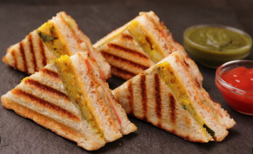ಗರಿಗರಿಯಾದ ಮಸಾಲಾ ಸ್ಯಾಂಡ್ವಿಚ್ ಸಿದ್ಧವಾಗಿದೆ! ಇದನ್ನು ತ್ರಿಕೋನ ಆಕಾರದಲ್ಲಿ ಕತ್ತರಿಸಿ, ಹೆಚ್ಚುವರಿ ಚಟ್ನಿ ಮತ್ತು ಟೊಮೆಟೊ ಸಾಸ್ನೊಂದಿಗೆ ಬಿಸಿಯಾಗಿ ಸವಿಯಿರಿ.