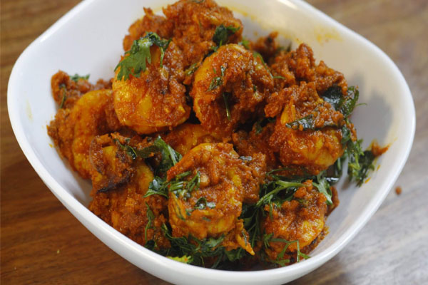 ಈಗ ತೊಳೆದು ಸ್ವಚ್ಛಗೊಳಿಸಿದ ಸಿಗಡಿ ಸೇರಿಸಿ, ಉಪ್ಪು, ಅರಿಶಿಣ ಪುಡಿ, ಹಸಿಮೆಣಸು ಸೇರಿಸಿ ಚೆನ್ನಾಗಿ ಮಿಶ್ರಣ ಮಾಡಿ ಪಾತ್ರೆಯನ್ನು ಮುಚ್ಚಿ ಬೇಯಿಸಿ. ಈಗ ದನಿಯಾ ಪುಡಿ, ಹುಣಸೆರಸ ಮತ್ತು ಅಗತ್ಯವಿದ್ದಷ್ಟು ನೀರು ಸೇರಿಸಿ ಮಧ್ಯಮ ಉರಿಯಲ್ಲಿ ಬೇಯಿಸಿ. ಸಿಗಡಿ ಬೆಂದ ನಂತರ ಹುರಿದು ಇಟ್ಟ ತೆಂಗಿನತುರಿ ಹಾಗೂ ಕೊತ್ತಂಬರಿ ಸೊಪ್ಪು ಸೇರಿಸಿ ಚೆನ್ನಾಗಿ ಕಲಸಿ, ಸುಕ್ಕಾ ಸ್ವಲ್ಪ ಗಟ್ಟಿಯಾಗುವ ತನಕ ಬೇಯಿಸಿ.