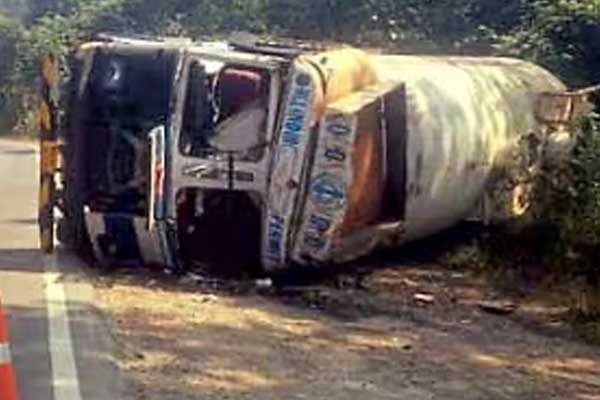 ಚಾಲಕನ ನಿಯಂತ್ರಣ ತಪ್ಪಿ ರಾಷ್ಟ್ರೀಯ ಹೆದ್ದಾರಿಯಲ್ಲಿ ಟ್ಯಾಂಕರ್ ಪಲ್ಟಿಯಾಗಿದ್ದು ಚಾಲಕ ಗಾಯಗೊಂಡಿದ್ಥು ಆತನನ್ನು ಆಸ್ಪತ್ರೆಗೆ ದಾಖಲಿಸಲಾಗಿದೆ.