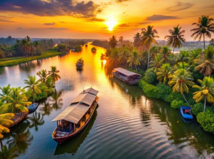 ನದಿಗಳು, ಕಾಲುವೆಗಳು ಮತ್ತು ವಿಶಾಲ ಸರೋವರಗಳ ಈ ಜಾಲವು ಅಲಪ್ಪುಳ ಮತ್ತು ಕೊಟ್ಟಾಯಂನಂತಹ ಪ್ರದೇಶಗಳಲ್ಲಿ ಸಾವಿರಾರು ಕಿಲೋಮೀಟರ್ಗಳಷ್ಟು ಹರಡಿದೆ. ತೆಂಗಿನ ತೋಟಗಳ ನಡುವೆ ಹಾದುಹೋಗುವ, ಗರಿಗರಿಯಾದ ಗ್ರೀನ್ ಕಾರ್ಪೆಟ್ನಂತೆ ಕಾಣುವ ಈ ಜಲಮಾರ್ಗಗಳಲ್ಲಿ ಸಂಚರಿಸುವ ಹೌಸ್ಬೋಟ್ಗಳು ವಿಶ್ವವಿಖ್ಯಾತ. ನಗರದ ಗದ್ದಲದಿಂದ ದೂರವಿರುವ ಈ ಹಿನ್ನೀರಿನಲ್ಲಿ ರಾತ್ರಿ ಕಳೆಯುವುದು, ಪ್ರಕೃತಿಯೊಂದಿಗೆ ಸಂಪೂರ್ಣವಾಗಿ ಬೆರೆತುಹೋಗುವಂತಹ ಅನುಭವ ನೀಡುತ್ತದೆ.