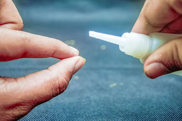 - ನೇಲ್ ಪೇಂಟ್ ರಿಮೂವರ್: ನೇಲ್ ಪೇಂಟ್ ರಿಮೂವರ್ ಅಥವಾ ಥಿನ್ನರ್ ಚರ್ಮದ ಮೇಲೆ ಹಾಕಿ 3–4 ನಿಮಿಷ ಬಿಟ್ಟು ತೊಳೆಯಿರಿ. ಅಂಟು ಮೃದುವಾಗಿ ಸ್ವತಃ ಹೊರಬಂದಂತೆ ಬೀಳುತ್ತದೆ.