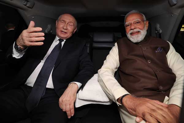 ದೆಹಲಿಯ ವಿಮಾನ ನಿಲ್ದಾಣದಿಂದ ಪ್ರಧಾನಿ ನರೇಂದ್ರ ಮೋದಿ ಮತ್ತು ರಷ್ಯಾ ಅಧ್ಯಕ್ಷ ವ್ಲಾಡಿಮಿರ್ ಪುಟಿನ್ ಒಂದೇ ಕಾರಿನಲ್ಲಿ ಪ್ರಯಾಣ ಬೆಳೆಸಿದರು.