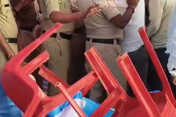 ಕೊಪ್ಪಳ ತಾಲೂಕಿನ ಹಿಟ್ನಾಳ ಗ್ರಾಮದಲ್ಲಿ ಸೋಮವಾರ ರೈಲ್ವೆ ಮೇಲ್ಸೇತುವೆ ಕಾಮಗಾರಿ ಶಂಕುಸ್ಥಾಪನೆ ಕಾರ್ಯಕ್ರಮದ ವೇಳೆ ಭಾರಿ ಹೈಡ್ರಾಮಾ ನಡೆದಿದ್ದು, ಕಾಂಗ್ರೆಸ್ ಕಾರ್ಯಕರ್ತರು ಕೇಂದ್ರ ಸಚಿವ ವಿ. ಸೋಮಣ್ಣ ಅವರತ್ತ ಕುರ್ಚಿ ಎಸೆದು ಆಕ್ರೋಶ ವ್ಯಕ್ತಪಡಿಸಿದ್ದಾರೆ.