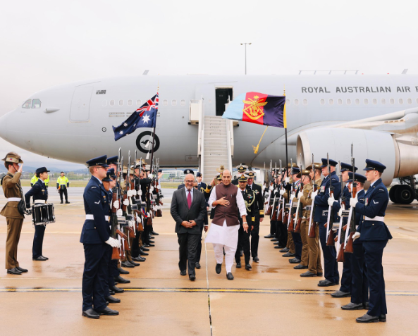 ರಕ್ಷಣಾ ಸಚಿವ ರಾಜನಾಥ್ ಸಿಂಗ್ ಅವರು ಇಂದು ಕ್ಯಾನ್ಬೆರಾಗೆ ಆಗಮಿಸಿದ್ದು, ಉಭಯ ರಾಷ್ಟ್ರಗಳ ನಡುವಿನ ರಕ್ಷಣಾ ಮತ್ತು ಕಾರ್ಯತಂತ್ರದ ಸಹಕಾರವನ್ನು ಬಲಪಡಿಸುವ ಗುರಿಯನ್ನು ಹೊಂದಿರುವ ಆಸ್ಟ್ರೇಲಿಯಾಕ್ಕೆ ಅಧಿಕೃತ ಭೇಟಿಯ ಭಾಗವಾಗಿ.