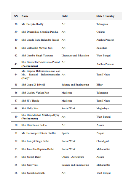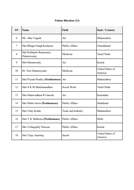 ಪದ್ಮ ವಿಭೂಷಣ ಸಾಧಕರ ಪಟ್ಟಿ