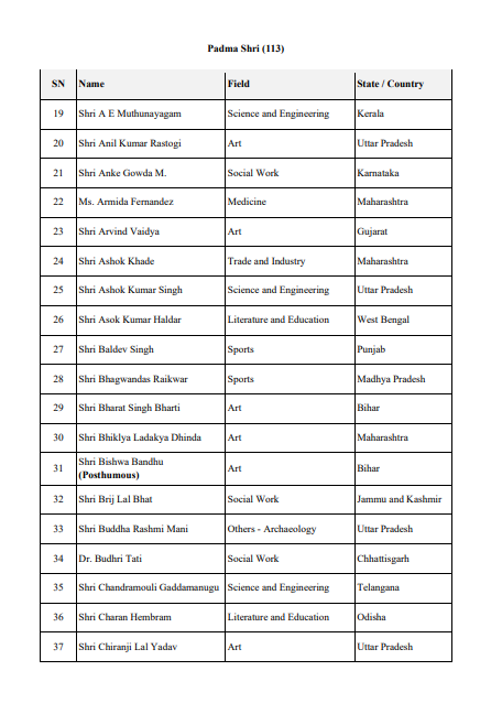 ಐವರು ಸಾಧಕರಿಗೆ ಪದ್ಮ ವಿಭೂಷಣ ಹಾಗೂ 13 ಸಾಧಕರಿಗೆ ಪದ್ಮ ಭೂಷಣ ಪ್ರಶಸ್ತಿ ಗೌರವ ಸಿಕ್ಕಿದೆ. 113 ಮಂದಿಗೆ ಪದ್ಮಶ್ರೀ ಪ್ರಶಸ್ತಿಗೆ ಭಾಜನರಾಗಿದ್ದಾರೆ. ಆ ಪೈಕಿ ಕರ್ನಾಟಕದ ಶತಾವಧಾನಿ ಆರ್​​. ಗಣೇಶ್​​ಗೆ ಪದ್ಮ ಭೂಷಣ ಪ್ರಶಸ್ತಿ ಲಭಿಸಿದೆ. ಉಳಿದಂತೆ 7 ಮಂದಿ ಪದ್ಮಶ್ರೀಗೆ ಭಾಜನರಾಗಿದ್ದಾರೆ.