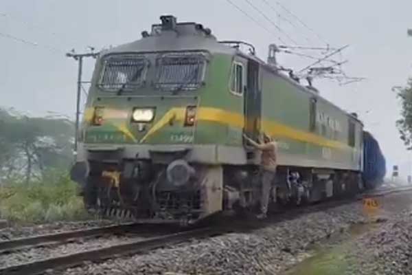 ರೈಲು ನಿಲುಗಡೆಯಾಗಿರುವ ವಿಡಿಯೊ ಸಾಮಾಜಿಕ ಮಾಧ್ಯಮದಲ್ಲಿ ವೈರಲ್ ಆಗಿದೆ.