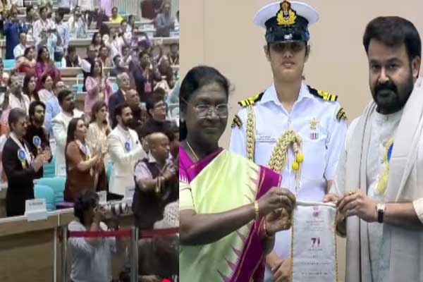 ಮಲಯಾಳಂ ನಟ ಮೋಹನ್ ಲಾಲ್ ಅವರಿಗೆ ರಾಷ್ಟ್ರಪತಿ ದ್ರೌಪದಿ ಮುರ್ಮು ಅವರು ‘ದಾದಾಸಾಹೇಬ್ ಫಾಲ್ಕೆ’ ಪ್ರಶಸ್ತಿ ಪ್ರದಾನ ಮಾಡಿದರು.