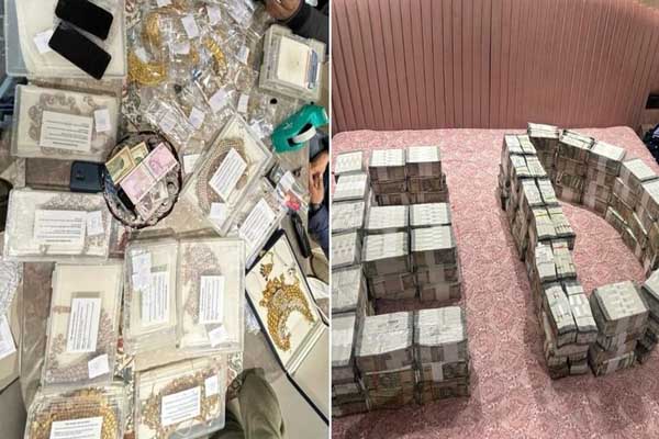 ಮಂಗಳವಾರ ಶುರುವಾದ ದಾಳಿ ಇನ್ನೂ ಮುಂದುವರಿದಿದೆ. ಇಂದು ಬೆಳಗ್ಗೆ ನೋಟು ಎಣಿಕೆ ಯಂತ್ರಗಳೊಂದಿಗೆ ಆಗಮಿಸಿದ ಬ್ಯಾಂಕ್ ಅಧಿಕಾರಿಗಳು ಅಪಾರ ಪ್ರಮಾಣದ ನಗದು, ಆಭರಣ, ಬ್ಯಾಂಕ್ ಚೆಕ್ ಪುಸ್ತಕ ಹಾಗೂ ಇತರ ದಾಖಲೆಗಳನ್ನ ವಶಪಡಿಸಿಕೊಂಡಿದ್ದಾರೆ. ಕಂತೆ ಕಂತೆಯ ಹಣದ ರಾಶಿ ಹಾಗೂ ವಜ್ರಾಭರಣ ತುಂಬಿದ ಸೂಟ್ ಕೇಸ್ ಇರುವ ಫೋಟೋ ಈಗ ಸೋಷಿಯಲ್ ಮೀಡಿಯಾದಲ್ಲಿ ಹರಿದಾಡುತ್ತಿದೆ.