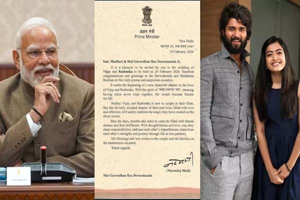 ನಿಮ್ಮ ಮದುವೆಯ ಕರೆಯೋಲೆ ಸಿಕ್ಕಿದ್ದಕ್ಕೆ ಸಂತೋಷವಾಗಿದೆ. ಈ ಮಂಗಳಕರ ಸಂದರ್ಭದಂದು ಮಂದಣ್ಣ ಹಾಗೂ ದೇವರಕೊಂಡ ಕುಟುಂಬಕ್ಕೆ ಶುಭಾಶಯಗಳನ್ನು ಕೋರುತ್ತೇನೆ. ಇದು ವಿಜಯ್ ಮತ್ತು ರಶ್ಮಿಕಾ ಅವರ ಜೀವನದಲ್ಲಿ ಒಂದು ಹೊಸ, ಸುಂದರ ಅಧ್ಯಾಯದ ಆರಂಭವನ್ನು ಸೂಚಿಸುತ್ತದೆ. ‘ಸಖಾ ಸಪ್ತಪದಾ ಭವ’ ಅಂದರೆ ಏಳು ಹೆಜ್ಜೆಗಳನ್ನು ಜೊತೆಯಾಗಿ ನಡೆಯುವ ಮೂಲಕ ದಂಪತಿಗಳು ಜೀವನಪರ್ಯಂತ ಸ್ನೇಹಿತರಾಗುತ್ತಾರೆ ಎಂಬ ಭಾವನೆಯೊಂದಿಗೆ ಈ ಪಯಣ ಆರಂಭವಾಗುತ್ತಿದೆ.