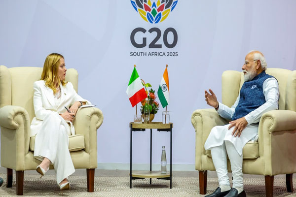 ದಕ್ಷಿಣ ಆಫ್ರಿಕಾದ ಜೋಹಾನ್ಸ್ಬರ್ಗ್ನಲ್ಲಿ ನಡೆದ ಜಿ20 ಶೃಂಗಸಭೆಯಲ್ಲಿ ಪ್ರಧಾನಿ ನರೇಂದ್ರ ಮೋದಿ ಮತ್ತು ಇಟಲಿಯ ಪ್ರಧಾನಿ ಜಾರ್ಜಿಯಾ ಮೆಲೋನಿ ಮಹತ್ವದ ಮಾತುಕತೆ ನಡೆಸಿದ ನಂತರ, ಭಯೋತ್ಪಾದನೆಗೆ ಹಣಕಾಸು ಒದಗಿಸುವ ಜಾಲವನ್ನು ನಿಗ್ರಹಿಸಲು ಭಾರತ ಮತ್ತು ಇಟಲಿ ಜಂಟಿ ಉಪಕ್ರಮವನ್ನು ಘೋಷಿಸಿವೆ. ವ್ಯಾಪಾರ, ರಕ್ಷಣಾ, ಭದ್ರತೆ ಸೇರಿದಂತೆ ಹಲವು ಕ್ಷೇತ್ರಗಳಲ್ಲಿ ದ್ವಿಪಕ್ಷೀಯ ಸಂಬಂಧಗಳನ್ನು ವಿಸ್ತರಿಸುವ ಬಗ್ಗೆ ಇಬ್ಬರು ನಾಯಕರು ಚರ್ಚೆ ನಡೆಸಿದರು.