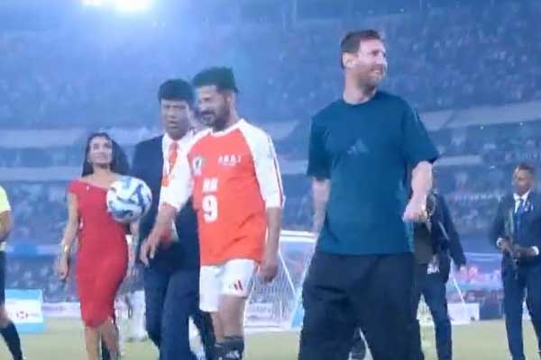 ಬಳಿಕ ಇಡೀ ಸ್ಟೇಡಿಯಂ ಒಂದು ಸುತ್ತು ಹಾಕಿದ ಮೆಸ್ಸಿ ಅಭಿಮಾನಿಗಳತ್ತ ಚೆಂಡನ್ನ ಕಿಕ್ ಮಾಡಿದ್ರು. ಫುಟ್ಬಾಲ್ ದಿಗ್ಗಜ ಆಟಗಾರನನ್ನ ಹತ್ತಿರದಿಂದ ಕಣ್ತುಂಬಿಕೊಂಡ ಹೈದರಾಬಾದ್ ಮಂದಿ ಫುಲ್ ಖುಷ್ ಆಗಿದ್ದಾರೆ.