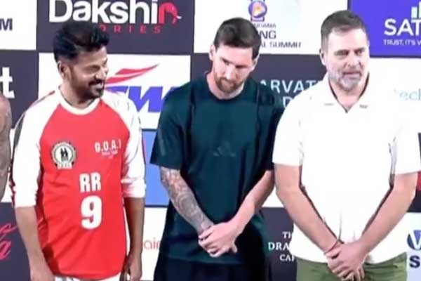 ಕೊಲ್ಕತ್ತಾ ಭೇಟಿ ಬಳಿಕ ಲಿಯೋನಲ್ ಮೆಸ್ಸಿ ಅವರು ಸಂಜೆ ಸಂಜೆ 4:30ರ ಸುಮಾರಿಗೆ ಶಂಷಾಬಾದ್ ವಿಮಾನ ನಿಲ್ದಾಣದಲ್ಲಿ ಬಂದಿಳಿದು ನೇರವಾಗಿ ತಾಜ್ ಫಲಕ್ನುಮಾ ಪ್ಯಾಲೆಸ್ ತಲುಪಿದ್ರು. ಅಲ್ಲಿ, ಮೆಸ್ಸಿ ಅವರನ್ನ ತೆಲಂಗಾಣ ಸಿಎಂ ರೇವಂತ್ ರೆಡ್ಡಿ ಅವರು ಸ್ವಾಗತಿಸಿದ್ರು. ನಂತರ, ಮೆಸ್ಸಿ ಉಪ್ಪಲ್ ಸ್ಟೇಡಿಯಂನಲ್ಲಿ ಆಯೋಜಿಸಿದ್ದ ಕಾರ್ಯಕ್ರಮದಲ್ಲಿ ಪಾಲ್ಗೊಂಡು ಸಿಎಂ ರೇವಂತ್ ರೆಡ್ಡಿ ಅವರೊಂದಿಗೆ ಫುಟ್ಬಾಲ್ ಆಡಿದರು.