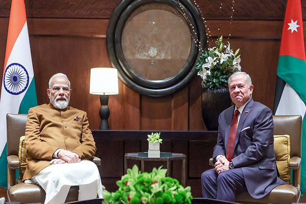 ಭಾರತ ಮತ್ತು ಪಶ್ಚಿಮ ಏಷ್ಯಾ ನಡುವಿನ ರಾಜತಾಂತ್ರಿಕ ಸಂವಾದಕ್ಕೆ ಹೊಸ ಚೈತನ್ಯ ನೀಡುವಂತೆ ಪ್ರಧಾನಿ ನರೇಂದ್ರ ಮೋದಿ ಜೋರ್ಡಾನ್ ರಾಜ ಅಬ್ದುಲ್ಲಾ II ಇಬ್ನ್ ಅಲ್ ಹುಸೇನ್ ಅವರನ್ನು ಅಮ್ಮನ್ನಲ್ಲಿ ಭೇಟಿಯಾಗಿದ್ದಾರೆ. ಡಿಸೆಂಬರ್ 15ರ ಸಂಜೆ ಹುಸೇನಿಯಾ ಅರಮನೆಯಲ್ಲಿ ನಡೆದ ಈ ಸಭೆಯಲ್ಲಿ ದ್ವಿಪಕ್ಷೀಯ ಸಂಬಂಧಗಳ ಜೊತೆಗೆ ಪ್ರಾದೇಶಿಕ ಹಾಗೂ ಜಾಗತಿಕ ಭದ್ರತಾ ವಿಚಾರಗಳ ಕುರಿತು ವಿಸ್ತೃತ ಚರ್ಚೆ ನಡೆಯಿತು.
