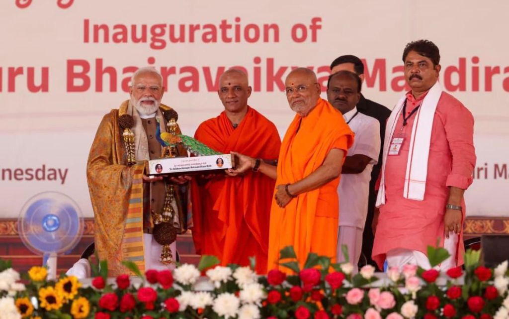 ಮಂಡ್ಯ ಜಿಲ್ಲೆಯ ಆದಿಚುಂಚನಗಿರಿ ಶ್ರೀಕ್ಷೇತ್ರದಲ್ಲಿ ಇಂದು ಐತಿಹಾಸಿಕ ಮತ್ತು ಭಕ್ತಿಭಾವಪೂರ್ಣ ಕ್ಷಣಕ್ಕೆ ಲಕ್ಷಾಂತರ ಭಕ್ತರು ಸಾಕ್ಷಿಯಾದರು. ಪ್ರಧಾನಮಂತ್ರಿ ನರೇಂದ್ರ ಮೋದಿ ಅವರು ಶ್ರೀ ಗುರು ಭೈರವೈಕ್ಯ ಮಂದಿರವನ್ನು ಲೋಕಾರ್ಪಣೆ ಮಾಡಿ, ನಂತರ ಭಕ್ತರ ಮಹಾಸಂಗಮವನ್ನು ಉದ್ದೇಶಿಸಿ ಮಾತನಾಡಿದರು.