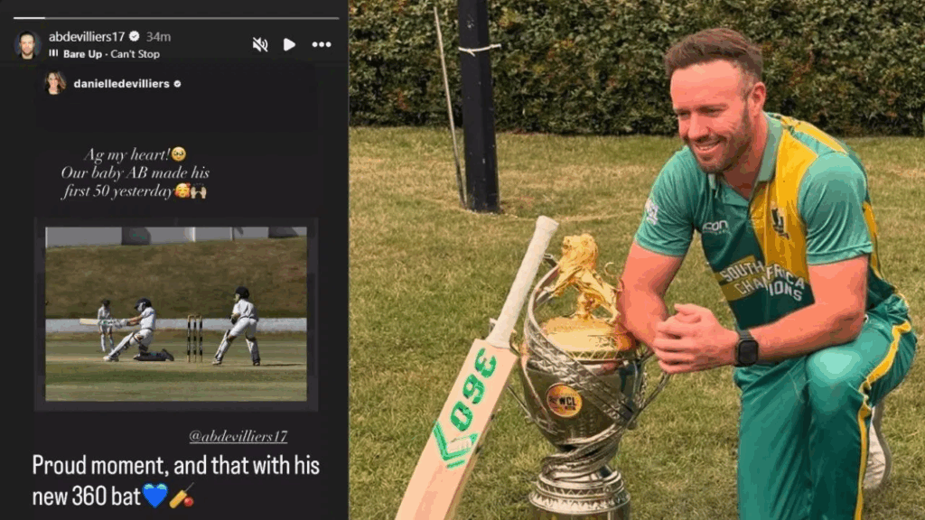 ಈ ಸಂತಸದ ಸುದ್ದಿಯನ್ನು ಸ್ವತಃ ಎಬಿ ಡಿವಿಲಿಯರ್ಸ್ ಅವರೇ ತಮ್ಮ ಸಾಮಾಜಿಕ ಮಾಧ್ಯಮ ಖಾತೆಯಲ್ಲಿ ಅಭಿಮಾನಿಗಳೊಂದಿಗೆ ಹಂಚಿಕೊಂಡಿದ್ದಾರೆ. ಎಬಿಡಿ ಅವರ ಪತ್ನಿ ಡೇನಿಯಲ್ ಅವರು ಇನ್ಸ್ಟಾಗ್ರಾಮ್ ಸ್ಟೋರಿಯಲ್ಲಿ ಮಗನ ಸಾಧನೆಯನ್ನು ಮೊದಲು ಪ್ರಕಟಿಸಿದ್ದರು. ಆ ಪೋಸ್ಟ್ ಅನ್ನು ಮರು-ಪೋಸ್ಟ್ ಮಾಡಿದ ಎಬಿ ಡಿವಿಲಿಯರ್ಸ್, “ಓ ದೇವರೇ! ನಮ್ಮ ಮಗು ಎಬಿ ತನ್ನ ಮೊದಲ ಅರ್ಧಶತಕ ಬಾರಿಸಿದ್ದಾನೆ” ಎಂದು ಬರೆದುಕೊಂಡಿದ್ದಾರೆ.