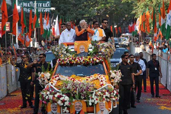 ಪುದುಚೇರಿಯ ಅಜಂತಾ ಸಿಗ್ನಲ್ ಜಂಕ್ಷನ್‌ನಿಂದ ಅಣ್ಣಾ ಸ್ಕ್ವೇರ್ ವರೆಗೆ ರೋಡ್ ಶೋ ನಡೆಸಿದ ಮೋದಿ ಬಿಜೆಪಿ ಅಭ್ಯರ್ಥಿಗಳ ಪರ ಪ್ರಚಾರ ನಡೆಸಿದರು.