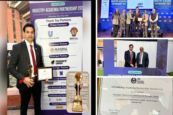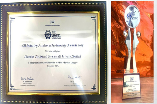 ಭಾರತೀಯ ಕೈಗಾರಿಕಾ ಒಕ್ಕೂಟ ನವದೆಹಲಿಯಲ್ಲಿ ಆಯೋಜಿಸಿದ್ದ ‘ಇಂಡಸ್ಟ್ರಿ-ಅಕಾಡೆಮಿ ಪಾಲುದಾರಿಕೆ 2025’ ಜಾಗತಿಕ ಶೃಂಗಸಭೆಯಲ್ಲಿ ಬೆಂಗಳೂರು ಮೂಲದ ಪ್ರಮುಖ ಎಲೆಕ್ಟ್ರಿಕಲ್ ಎಂಜಿನಿಯರಿಂಗ್ ಸಂಸ್ಥೆಯಾದ ಶಂಕರ್ ಎಲೆಕ್ಟ್ರಿಕಲ್ಸ್ ಸರ್ವಿಸಸ್ (ಐ) ಪ್ರೈವೇಟ್ ಲಿಮಿಟೆಡ್ ಅತ್ಯುನ್ನತ ‘ಡೈಮಂಡ್ ಅವಾರ್ಡ್’ ಮುಡಿಗೇರಿಸಿಕೊಂಡಿದೆ.