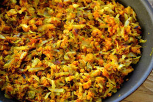 ಸರಳವಾಗಿ, ಕಡಿಮೆ ಸಮಯದಲ್ಲಿ ತಯಾರಿಸಬಹುದಾದ ಮತ್ತು ದೈನಂದಿನ ಊಟಕ್ಕೆ ಅಥವಾ ತಿಂಡಿಗೆ ಸೂಕ್ತವಾದ ಸೈಡ್ ಡಿಶ್ ಅಂದ್ರೆ ಕ್ಯಾಬೇಜ್ ಪಲ್ಯ. ತೆಂಗಿನಕಾಯಿ ಹಾಗೂ ಸರಳ ಒಗ್ಗರಣೆಯ ಸುವಾಸನೆ ಇದಕ್ಕೆ ವಿಶೇಷ ರುಚಿ ನೀಡುತ್ತದೆ. ಅನ್ನ, ರೊಟ್ಟಿ ಅಥವಾ ಚಪಾತಿಯ ಜೊತೆ ತುಂಬಾ ಚೆನ್ನಾಗಿ ಹೊಂದಿಕೊಳ್ಳುತ್ತದೆ. ಬೇಕಾಗುವ ಸಾಮಗ್ರಿಗಳು ಕ್ಯಾಬೇಜ್ (ಸಣ್ಣವಾಗಿ ಕತ್ತರಿಸಿದ್ದು) – 2 ಕಪ್ಈರುಳ್ಳಿ – 1ಹಸಿಮೆಣಸು – 1–2ಸಾಸಿವೆ – ½ ಚಮಚಉದ್ದಿನ ಬೇಳೆ – 1 ಚಮಚಕಡಲೆಬೇಳೆ – 1 ಚಮಚಅರಿಶಿನ – … Continue reading ಪಲ್ಯ, ಗ್ರೇವಿ & More 17 | ಈ ರೀತಿ ಕ್ಯಾಬೇಜ್ ಪಲ್ಯ ಮಾಡಿದ್ರೆ ಚಪಾತಿ, ದೋಸೆ ಎಲ್ಲಾ ಖಾಲಿಯಾಗೋದು ಪಕ್ಕಾ!