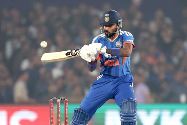 ಅಂತಿಮ ಹಂತದಲ್ಲಿ ಹಾರ್ದಿಕ್ ಪಾಂಡ್ಯ ಪಂದ್ಯದ ಗತಿ ಬದಲಿಸಿದರು. ಇತ್ತ ಶಿವಂ ದುಬೆ 11 ರನ್‌ಗೆ ನಿರ್ಗಮಿಸಿದರು.ಆದರೆ ಹಾರ್ದಿಕ್ ಪಾಂಡ್ಯ ಸ್ಫೋಟಕ ಬ್ಯಾಟಿಂಗ್ ಪ್ರದರ್ಶನ ನೀಡಿದರು. 28 ಎಸೆತದಲ್ಲಿ 6 ಬೌಂಡರಿ ಹಾಗೂ 4 ಸಿಕ್ಸರ್ ಸಿಡಿಸಿದರು. ಈ ಮೂಲಕ ಅಜೇಯ 59 ರನ್ ಸಿಡಿಸಿದರು. ಇತ್ತ ಜಿತೇಶ್ ಶರ್ಮಾ ಅಜೇಯ 10 ರನ್ ಸಿಡಿಸಿದರು. ಇದರೊಂದಿಗೆ ಭಾರತ 6 ವಿಕೆಟ್ ನಷ್ಟಕ್ಕೆ 175 ರನ್ ಸಿಡಿಸಿತು.