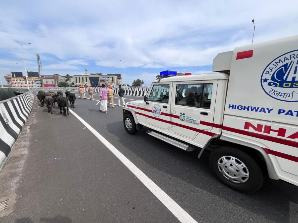 ಕೂಡಲೇ ರಾಷ್ಟ್ರೀಯ ಹೆದ್ದಾರಿ ಭದ್ರತಾ ಇಲಾಖೆ ಮತ್ತು ಅಗ್ನಿಶಾಮಕ ದಳದ ಅಧಿಕಾರಿಗಳು ಆಗಮಿಸಿ ಕೋಣಗಳ ಹಿಂಡನ್ನು ಸರ್ವೀಸ್ ರಸ್ತೆಗೆ ತಿರುಗಿಸಿರುವುದರಿಂದ ಸಂಭವಿಸಬಹುದಾದ ಭಾರೀ ಅಪಘಾತ ತಪ್ಪಿ ಹೋಯಿತು.