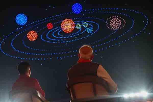ಬಳಿಕ ಸೋಮನಾಥ ದೇವಾಲಯದಲ್ಲಿ ಆಯೋಜಿಸಲಾಗಿದ್ದ ಡ್ರೋನ್ ಪ್ರದರ್ಶನದಲ್ಲಿ ಭಾಗವಹಿಸಿ, ಅದ್ಭುತ ಕ್ಷಣವನ್ನು ಕಣ್ತುಂಬಿಕೊಂಡರು.