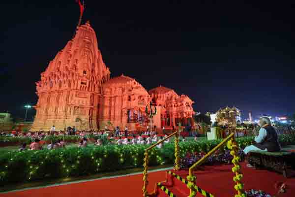 ಸೋಮನಾಥ ಸ್ವಾಭಿಮಾನ ಪರ್ವದಲ್ಲಿ ಭಾಗವಹಿಸಲು ಗುಜರಾತಿನ ಸೋಮನಾಥಕ್ಕೆ ಆಗಮಿಸಿರುವ ಪ್ರಧಾನಿ ನರೇಂದ್ರ ಮೋದ ದೇಗುಲ ತಲುಪಿದ್ದಾರೆ. ಇಲ್ಲಿ ನಡೆಯುತ್ತಿರುವ ಪ್ರಮುಖ ಸಾಂಸ್ಕೃತಿಕ ಮತ್ತು ಆಧ್ಯಾತ್ಮಿಕ ಕಾರ್ಯಕ್ರಮವಾದ ಸೋಮನಾಥ ಸ್ವಾಭಿಮಾನ್ ಪರ್ವ್‌ ಕಾರ್ಯಕ್ರಮಲ್ಲಿ ಭಾಗವಹಿಸಿದರು.